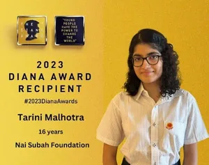 Tarini Malhotra, a 16-year-old student at The Shri Ram School, Moulsari Campus, Gurugram and the Founder of Nai Subah Foundation has bagged the prestigious Diana award for providing opportunities for societys most marginalised groups.