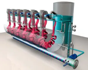 Airflow was the key element of the technology, as air is an ideal transport medium. The replacement of dye liquor with air as a method of transporting piece goods in jet-dyeing machines was a big step toward reducing water and chemical consumption. Compared to the jet system in which the nozzles are filled with liquor, nozzle pressure is negligible, thus offering optimum protection of sensitive textile surfaces. At the same time, the use of the mass flow principle provides a major improvement in fabric hank laying, thus preventing creasing. The moisture-saturated airflow ensures the uniform distribution of temperature on the fabric and in the machine, constituting a prerequisite for even and reproducible dyeing. Moreover, the low level of liquor in the dyeing boiler means the fabric is lighter than in conventional machinery and can, therefore, be accelerated quickly to high speeds. Thus, the risk of draft or strain is minimal, which is particularly advantageous with regard to the finishing of items containing elastin Fibres. The high transportation speeds of the fabric result in very short fabric turn time. High heating-up gradients are possible because a very low liquor ratio is maintained. The unique ability to use a hot drain system and rinsing with fresh water in a running wash system considerably reduces the time required for the dyeing process. Airflow technology represents the combined result of the entire range of possibilities provided by the technology. Through the interplay of all technical possibilities and functions, economic and ecological advantages over the traditional dyeing technology are achieved. The main advantages are as follows: ♦ Unlimited flexibility with regard to all Fibre except pure wool and fabric weight classes between 30 and 800 grams per square meter, as well as all standard market dyestuffs; ♦ The lowest liquor ratio on the market: approximately 1:2 for man-made Fibres and 1:3 to 1:4 for natural Fibres, depending on the article and structure; ♦ Energy savings of up to 40 per cent, thanks to a frequency converter, and the use of air as a transport medium, while all other systems need water; ♦ A reduction in the overall process time of approximately 25 per cent ♦ Lowest water/wastewater levels HOW IS AIR-DYE DIFFERENT?