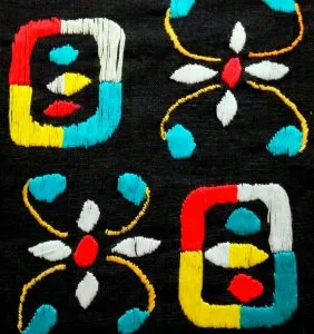 COLOURS: The colours mostly used in embroidery are white, black, red, green and yellow. TYPES OF EMBROIDERY: