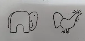 A very simple pattern is tindogbi done in satin stitch. It is said to have been inspired by the sight of a caterpillar sitting on a castor leaf and eating it. MOTIFS: