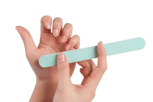 If your nails are at risk of damage due to your work or exercise regimen, carry a polishing file with you so you can quickly smooth out any rough spots and polish them. Keep going in the same direction as the straight line of your nail for the most even finish. Use a glass (or crystal) nail file instead of a memory board; the latter can grab and peel nails. "A glass file gives an even edge to the nail and may be used to repair the most vulnerable, brittle, and damaged nails," according to Dr. Stern.