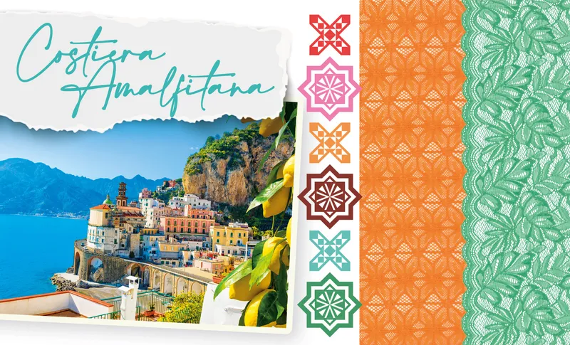 And here we are on the Costiera Amalfitana, a symbol of the most authentic Italianity celebrating summer with Latin vibrations, sensuality, and picturesque landscapes. The strong earth colors emerge, contrasting with the seductive turquoise of the sea, the lush green of lemon trees dotting the landscape, and the burnt tones of rocks and cliffs.