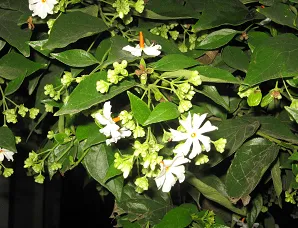 Flowers of parijataka open in the early morning and dropped down. Flowers collected in the morning ,orange colour stalk was separated from the white petals and the size of stalk is 1 to 1.5 inches and it is tube like with diameter is about 0.15 inch and it was dried in the shade and stored in the plastic tins for further research work.