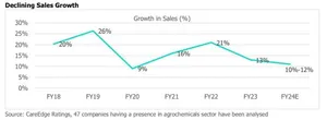 The sector is highly capital intensive and sizeable capex has happened in the last few years whereas sizeable capex is lined up for this year too. This capex is largely towards expanding the existing product capacities, expanding the distribution network, inorganic acquisitions, backward integration, new product development and their launch in the market. In case we see pressure on the operating profitability sustaining in H1FY24, there could be some slowdown in the capex in H2FY24. CareEdge Ratings' View “Long-term growth prospects of India’s agrochemicals sector remain intact on the back of robust domestic demand, improving export demand on the back of China + policy, good scope for backward integration in manufacturing technicals and key intermediates, competitive cost structure in India, good prospects from custom synthesis manufacturing and adequate fertilizer subsidy budgets. Sensing this opportunity, sizeable capex is also undertaken by Indian companies to grab the opportunity while balance sheets of Indian agrochemical companies have generally become stronger over a period providing an adequate headroom. In the near term, however, there are few headwinds in the form of high channel inventory, declining input prices, higher supplies from China and uncertain weather conditions due to El Nino which are likely to result in lower sales growth with pressure on operating profitability margins in FY24,” said Hardik Shah, Director at CareEdge Ratings.