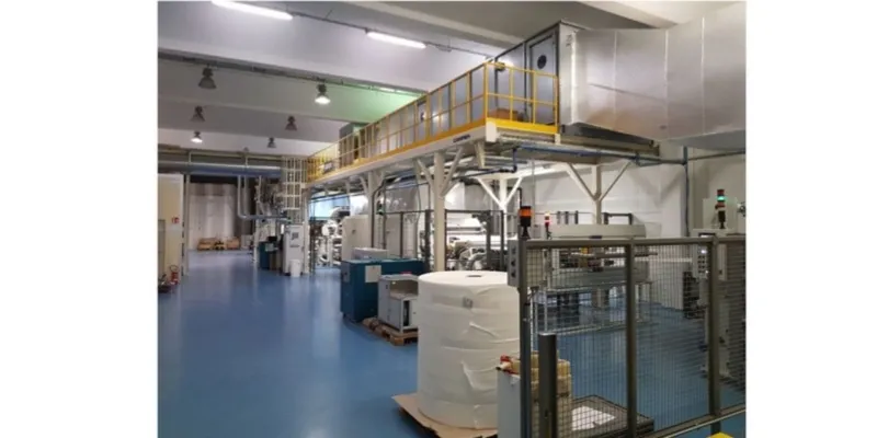 The Campen airlaid line, which includes hammer mill lines, fibre openers, drum forming heads, SAP dispensers, compactors, thermal bonding ovens, a calendar unit with cooling zone, process air filter, and humidification system, was delivered in late 2019. The machinery was operating well until a worldwide epidemic struck Europe in the early spring of 2020. Due to the Covid-19 issue and travel limitations, the production line could not be completed until June 2021, when the line was authorised at customer factory testing.
