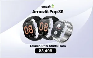 Price & Availability: Amazfit Pop 3S will be available in two variants - silicon and metal strap. While the Pop 3S with a silicon strap would be available at INR 3,999/-, the brand is offering a special price of INR 3,499 as launch offer. The metal strap variant would be available to buyers at INR 4,999, and a discounted price of INR 3,999 during the launch. Customers can buy the two variants of the Pop 3S from Amazfit's official website & Amazon once the smartwatch goes on sale on June 16th.