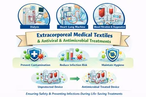 Medical textiles are essential in modern healthcare, supporting patient treatment, protection, and monitoring across implantable, non-implantable, PPE, extracorporeal, and smart textile applications. Antiviral and antimicrobial treatments significantly enhance their safety and performance by preventing infections, reducing cross-contamination, and improving durability. As healthcare needs continue to expand, these functional treatments will remain vital for effective infection control, patient safety, and improved healthcare outcomes.