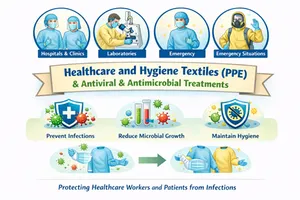 In healthcare environments, infection control has become a major concern as hospital-acquired infections, antimicrobial resistance, and viral outbreaks continue to increase. Medical textiles often come into direct or indirect contact with skin, blood, tissues, and body fluids, making them potential carriers of bacteria and viruses. To address these challenges, antiviral and antimicrobial treatments are increasingly applied to medical textiles to inhibit microbial growth, prevent biofilm formation, and enhance patient and healthcare worker safety. This overview discusses the importance of various medical textile categories and explains why antiviral and antimicrobial treatments are essential for their effective performance.