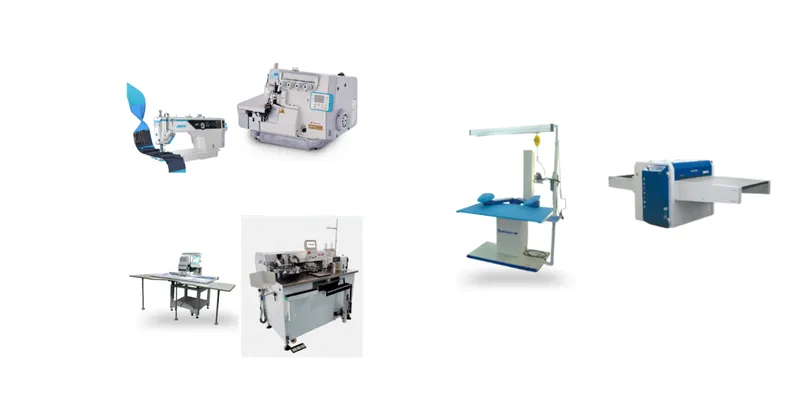 The finishing stage employs HASHIMA Fusing Machines with needle detection, providing precision fabric bonding with controlled heat and pressure alongside advanced metal detection for enhanced garment safety. RAMSON offers complete finishing lines for shirts, trousers, t-shirts, and denim, incorporating eco-friendly technology. Additional equipment includes thread trimming, bias cutting, bonding machines, inspection systems, and digital pullers.