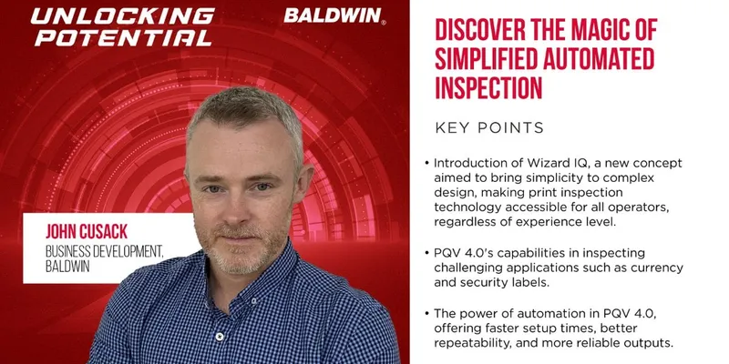 “It’s called the Wizard-iQ because, much like all of Guardian PQV 4.0, it is designed to work like magic to keep printers profitable and competitive,” said John Cusack, business development manager for Baldwin Vision Systems. “Years of close client collaboration and advanced engineering have gone into its creation.” [WATCH Baldwin’s Unlocking Potential Podcast “Discover the Magic of Simplified Automatic Inspection.”] We’re off to see the Wizard-iQ The Wizard-iQ features new commands and functions that allow for efficient, time-saving setups so operators can create inspection jobs in no time. The comprehensive, all-in-one interface allows immediate access to enter job parameters or to simply recall a previously run job in seconds. Additionally, Wizard-iQ does all the work upfront, making project configurations as quick and easy as possible. “Wave a magic wand with the brand-new ‘Copy All' Function,” said Cusack. “The user only needs to set up on a single label – then simply click ’Copy All’ and the setup is automatically applied to all others within the job.'' Finally, Wizard-iQ boasts a UX-optimized color theme for efficient navigation and improved usability The modernized, intuitive UI places more emphasis on the product images and defects as they occur, ensuring issues are understood and can be addressed quickly. All-seeing automation PQV 4.0 optimizes automation. With automated-Delta-E color monitoring, cutting-edge barcode recognition, and sensitivity and lighting presets, PQV 4.0 takes the legwork out of monotonous automation setups. Auto-∆E Color Monitoring leverages AI to find all valid color measurement locations within any image, consistently and repeatably for fast and rigorous Delta-E color analysis. With Auto-Barcode functionality, barcodes are automatically found, classified and trained. Another feature is the Reusable Master Image. This allows the originally approved reference image to be used any time a given product is run, ensuring complete fidelity to brand owner requirements. Finally, Sensitivity Presets enable users to save and load custom PQV sensitivity presets. Defeating defection PQV 4.0 is meticulously developed for inspecting challenging applications including currency, banknote, security and pharmaceutical. Object-Based Inspection ensures that all features in any job are automatically identified and appropriately toleranced to optimize inspection and avoid false defections. Any non-critical differences or unavoidable defects can be learned by the system to focus only on issues that matter. Its Auto-∆E Color Monitoring measures color everywhere, automatically, requiring no operator input or training. Furthermore, operators can spot trends or repetitive issues and make adjustments in real time. “At Baldwin, we remain committed to the printing industry by developing technologies that equip printers with the tools to help them be more efficient, more profitable and more sustainable,'' Cusak summed up. ''PQV 4.0 is just the latest advancement and exemplifies how we work with our customers to meet their needs for current and future success.” To learn more about the larger trends facing printers and the role of technology, visit printenomics.com To learn more about Guardian PQV 4.0, visit https://baldwintech.com/pqv-like-magic. ABOUT BALDWIN TECHNOLOGY COMPANY INC. Baldwin Technology Company Inc. is a leading global manufacturer and supplier of innovative process-automation equipment, parts, service and consumables for the printing, packaging, textile, plastic film extrusion and corrugated industries. As a total solutions provider, Baldwin offers our customers a broad range of market-leading technologies, with a focus on improving the economic and environmental efficiency of production processes. Through a global footprint of 21 company-owned locations and an extensive network of partners, our customers are supported globally, regionally and locally by dedicated sales and service team members who add value by forming long-term relationships. Baldwin is privately owned by BW Forsyth Partners, a Barry-Wehmiller company. For more, visit baldwintech.com. ABOUT BW FORSYTH PARTNERS BW Forsyth Partners is the investment arm of multibillion-dollar global manufacturing and engineering consulting firm Barry-Wehmiller. Established in 2009, BW Forsyth Partners blends Barry-Wehmiller’s unparalleled legacy of value creation and people-centric culture development with keen investing experience to help companies realize their true potential. With a focus limited to areas known well, BW Forsyth Partners seeks to partner with leadership teams to acquire small- to middle-market companies in the capital and component equipment, and professional services sectors. In each of our operating companies, BW Forsyth Partners deploys operational improvements and strategy development without compromising the autonomy, strategic vision and entrepreneurial spirit of their leadership teams. For more information, visit bwforsyth.com.
