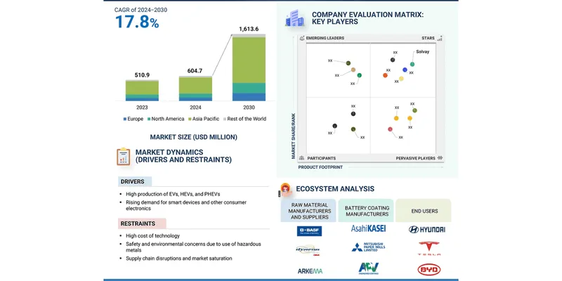 Battery Coating Market to Hit $1.6B by 2030, Led by EVs