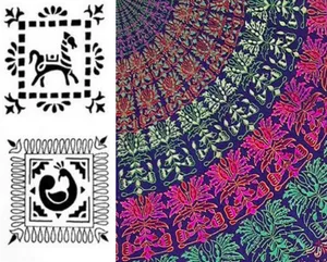 - A point on the block serves as a guide for the repeat impression, so that the whole effect is continuous and not disjoint. - The extensive choice of colors make the designs vibrant and fresh-feel. - Block prints and brush prints having been tried out successfully on fabrics like cotton, silk, sico and others