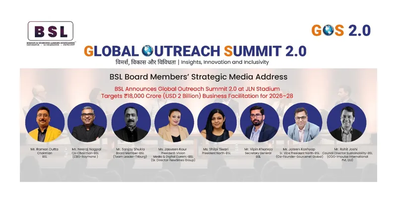 The senior leadership of the Brands & Sourcing Leaders Association (BSL) has announced Global Outreach Summit (GOS) 2.0, 2026, during a press conference in New Delhi. The summit aims to strengthen India’s role in global fashion, textiles, sourcing, and lifestyle industries, with a business facilitation target of ₹18,000 crore (approximately USD 2 billion) for FY 2026–28.