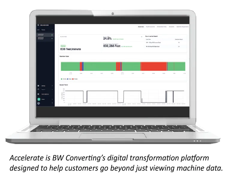 Accelerate, BW Converting’s proprietary digital transformation platform, aims to enable customers to do more than just view machine data. By combining real-time dashboards with the expertise of specialized technicians, Accelerate delivers deeper understanding of machine data, empowering customers to reduce downtime, enhance efficiency, and improve long-term system performance.