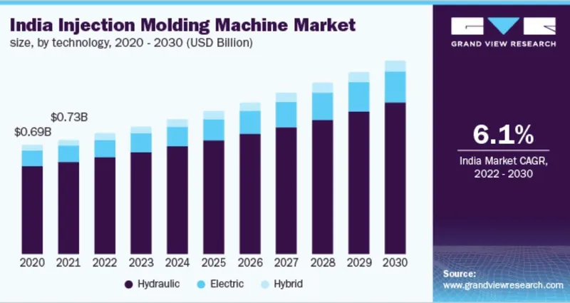 The report "Injection Molding Machine Market by Machine Type (Hydraulic, All-electric, and Hybrid), Clamping Force (0-200, 201-500 and Above 500), Product Type (Plastic, Rubber, Metals), End-Use Industry (Automotive, Packaging) and Region - Global Forecast to 2027", Injection molding machine market size is projected to reach USD 12.4 billion by 2027 from USD 10.4 billion in 2022 growing at a CAGR of 3.6%.