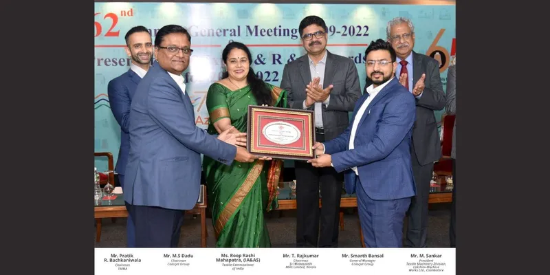 The Hounrable Textile commissioner, Mumbai, Ministry of Textile, Government of India Mrs. Roop Rashi Mahapatra as Chief Guest and Mr. T Rajkumar, Chairman, CITI (Sri Mahashakti Mills Ltd) handed over the award to Mr. M.S Dadu, Chairman and Mr. Smarth Bansal, GM product ColorJet India Limited.