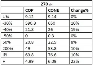 1) By the observing the above tables, we will choose 1400 mpm because it shows more better results than 1500 mpm & 1600 mpm. 3.2 At Different Yarn Tension and same Speed 1) Study was conducted in 30 30 Ne P/C 48/52 of unit-I, R/F 16. Spinning positions kept same for all the samples. 2) Full R/F bobbin tested at UT-4 to get the IPI at bobbin stage. 3) Each set of bobbins (10 bobbins) are converted into cones in A/C no 1 at different tension 250 cN, 260 cN & 270 cN at same speed 1450 mpm. 4) All cones tested at UT-4 to get the IPI at bobbin stage. 3.2.1 Results & discussion