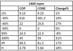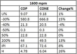 Table no. 1.2 : Yarn properties at 1500 mpm