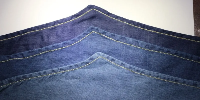 From the picture 2 representing the washed samples we can see the signatory puckering effect in the seams which is largely associated with the indigo fading effect. Observations about the microscopic analysis of indigo-dyed fabric picture 3 and its washing in picture 4, behavior is largely accurate and aligns with the well-known phenomenon of "ring dyeing" associated with traditional indigo dyeing process. In traditional indigo dyeing, the dye molecules do not penetrate deep into the fiber but instead adhere to the outer layers of the fabric. This is due to the nature of indigo dye. The "ring dyeing effect" is a term used to describe the uneven distribution of indigo dye on the fabric surface. It creates a characteristic appearance where the outermost layers of fibers, those most exposed to the dye bath, take on a darker color compared to the inner layers. This effect is visible under a microscope, where the concentration of dye on the fabric's surface can be observed. After washing, the indigo dye's lack of deep penetration becomes apparent as the surface dye begins to fade or wear off. This fading a hallmark of indigo-dyed textiles and contributes to the unique and desirable patina associated with indigo-dyed denim. It's an excellent illustration of how the structure of the dye molecules and their interaction with the textile fibers result in the distinct appearance and behavior of indigo-dyed textiles. Picture 3. Indigo Dyed Linen fabric microscopic view
