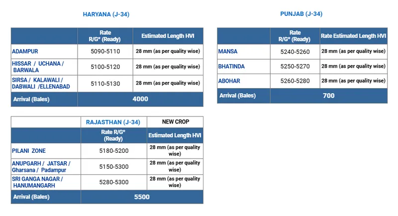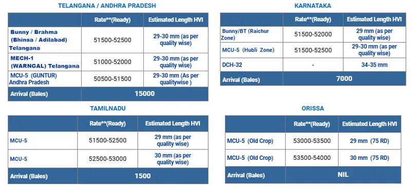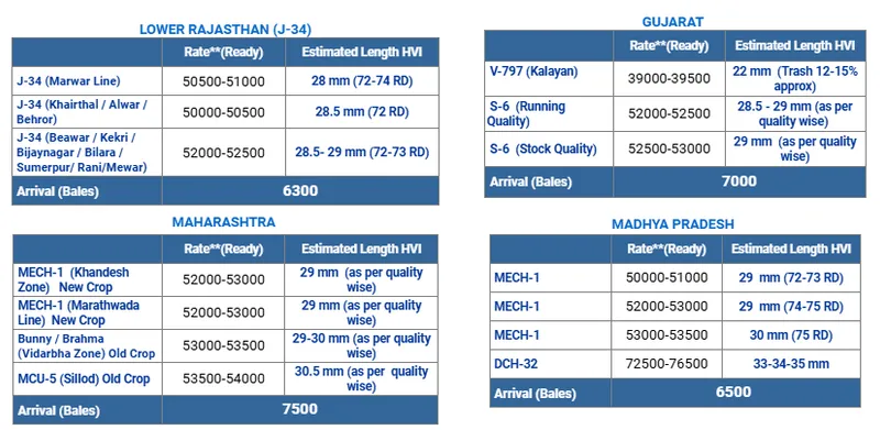 ARRIVAL BALES FRIDAY - 31.10.2025 TOTAL = 56800 BALES ARRIVAL BALES SATURDAY - 01.11.2025 COTTON PRICE TODAY - 3.11.2025 * Rate (INR) per Maund (1 Maund = 37.324 KG.)