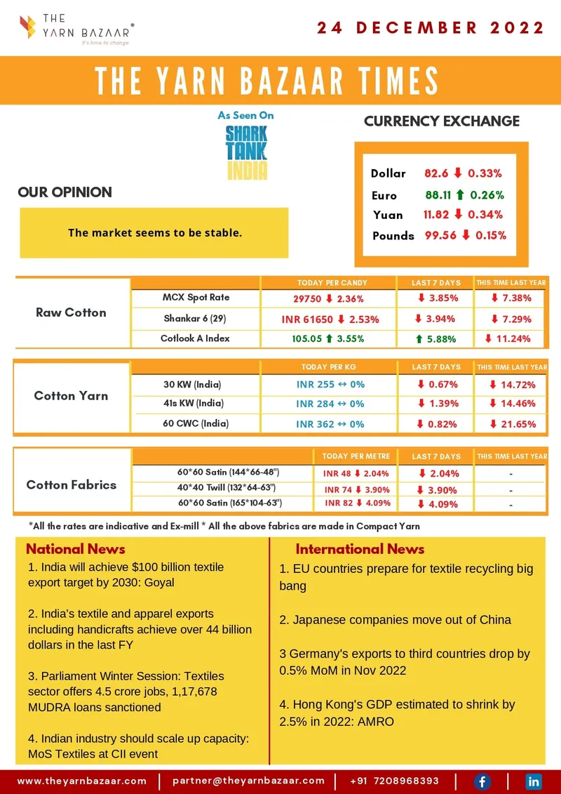 COTTON YARN/FABRIC MARKET REPORT – 24TH DECEMBER, 2022