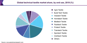 The size of the worldwide technical textile market was evaluated at USD 176.6 billion in 2019 and is projected to increase at a CAGR of 4.5% from 2020 to 2027. The market for technical textiles is expected to increase across a variety of end-use industries, including agriculture, construction, aerospace, medicine, and packaging as more people become aware of their advantages. Modern biotechnology has accelerated the progress of conventional farming practises toward a more scientific method. It is anticipated that the adoption and use of highly effective technologies in the agricultural sector would boost crop output, which will have an impact on overall productivity and the need for technological textiles.