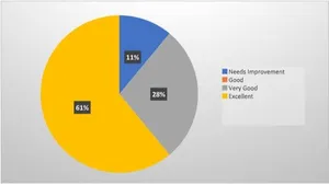 Fig. No. 3 Distribution of respondents as per overall rating of the Application CONCLUSION: To conclude, this project was a successful attempt. The basic idea of creating something to give out for society which will be beneficial for the people was seemed to be possible. The simple concept of developing an application which will make easy for consumers to order the stitched and customized garments and also a ray of light for the tailors for having a good market for them of consumers was made possible through the development of Touch and Stitch mobile application. As per the data and survey, this app was readily accepted by the people. Few changes and improvements were also given by the respondents as feedback, which will be surely included as a future update of the application.