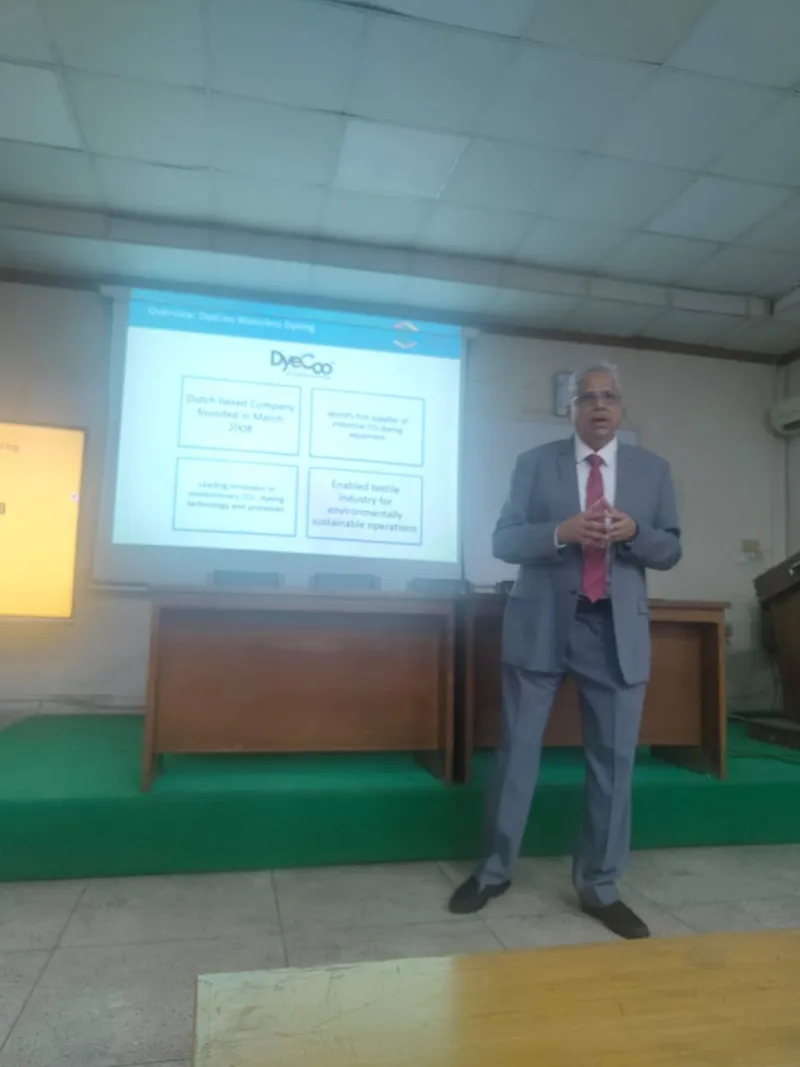 With over forty years in the dyes and chemical industry, Dr Mahapatra is recognised as a leading expert in India and internationally. He has spoken at numerous global conferences, specialising in reactive, acid, disperse, and direct dyes, as well as eco-friendly process optimisation and formulation design. Under his leadership, Dyecol™ has pioneered sustainable solutions, including low-water and energy-efficient dyeing processes. His technical publications and manuals remain key resources for professionals and students in textile engineering across South Asia. During his presentation, Dr Mahapatra emphasised the urgent need to transition from conventional dyeing methods toward environmentally responsible systems. He illustrated how targeted innovations could significantly reduce water and energy usage. Addressing young textile engineers and chemists, he called for greater collaboration between academia and industry to accelerate sustainable transformation. He also explored the possibilities offered by alternative natural fibres such as banana, pineapple, bamboo, and coir, alongside plant-derived dyes including indigo, turmeric, and madder, which offer ecological benefits while safeguarding traditional craftsmanship and cultural heritage.