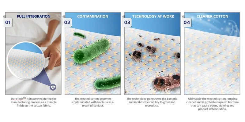 DuraTech will be available to cotton fabric manufacturers and brands in the U.S. and Asia, and will include Microban's invaluable turnkey support services for branded partners. This novel technology is perfect for creating antimicrobial cotton products,such as sheets and towels for home textiles, hospitality, apparel, and more.