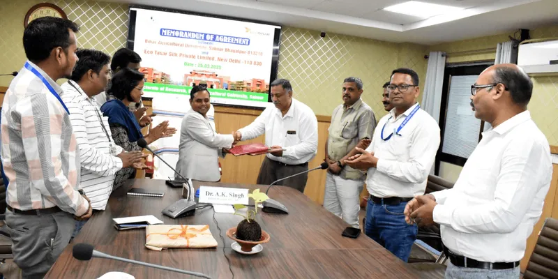 Bhagalpur, Bihar — EcoTasar, a leading sustainable textile company, has partnered with Bihar Agricultural University (BAU), Sabour, to innovate in eco-friendly Tasar silk production. The MoU between the two organizations focuses on collaborative research, technology sharing, and skill development to improve both the quality and sustainability of silk.