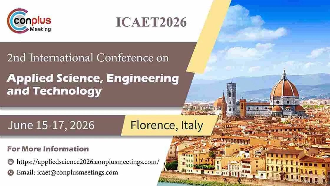 The 2nd International conference on Applied Science, Engineering and Technology (ICAET2026), organized by Conplus Meeting will be held on June 15-17, 2026 in Florence, Italy. ICAET2026 represent vital gatherings that unite experts and enthusiasts from diverse disciplines worldwide. These events serve as dynamic forums where cutting-edge research, technological advancements, and practical applications converge to address global challenges and foster innovation. Applied sciences such as Physics, Chemistry, Biology, Environmental Science, and Materials Science contribute to innovative solutions addressing global challenges. Concurrently, Engineering disciplines encompass Civil, Mechanical, Electrical, Chemical, and Biomedical Engineering, among others, focusing on designing and implementing real-world solutions. Technology fields, including Computer Science, Information Technology, Robotics, Artificial Intelligence, and Data Science, Drive Digital Innovation and System Advancements, shaping the future of technological applications and interdisciplinary collaborations in these dynamic conferences. Join us at ICAET2026 in Florence, Italy for a truly unforgettable experience!