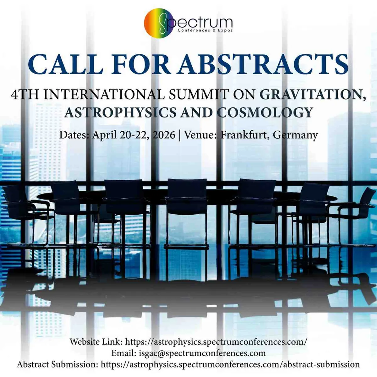 We are delighted to invite you to the 4th International Summit on Gravitation, Astrophysics, and Cosmology (ISGAC2026), taking place from April 20-22, 2026 in Frankfurt, Germany. This premier international forum will bring together leading experts to discuss the latest advancements in Gravitation, Astrophysics, and Cosmology. Building on the success of our previous conferences ISGAC2023 in Rome, ISGAC2024 in Florence and the upcoming ISGAC2025 in March-2025 we are excited to continue promoting collaboration and advancements in the field. Let’s come together to celebrate our progress and explore new frontiers in gravitational physics and cosmology. The topics covered at ISGAC2026 will include Gravitational Physics and Lensing, Wave-Particle Duality, Applied Relativity, Stellar and Solar Physics, Alternative Theories of Gravity, Jet Physics and Neutrino Cosmology. The conference will host distinguished keynote speakers from top universities and industry leaders, who will share valuable insights and engage in thought-provoking discussions. We look forward to welcoming you to ISGAC2026 in Frankfurt, Germany!