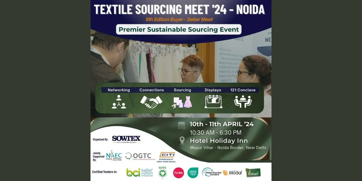 Noida is set for an extraordinary Sustainable Sourcing Textile Event – TSM '24 ( 9th Buyer-Seller Meet ). Supported by the Noida Apparel Export Cluster (NAEC), Okhla Garment & Textile Cluster (OGTC) & Confederation of Indian Textile Industry (CITI) and organized by SOWTEX, this two-day event promises dynamic networking opportunities.