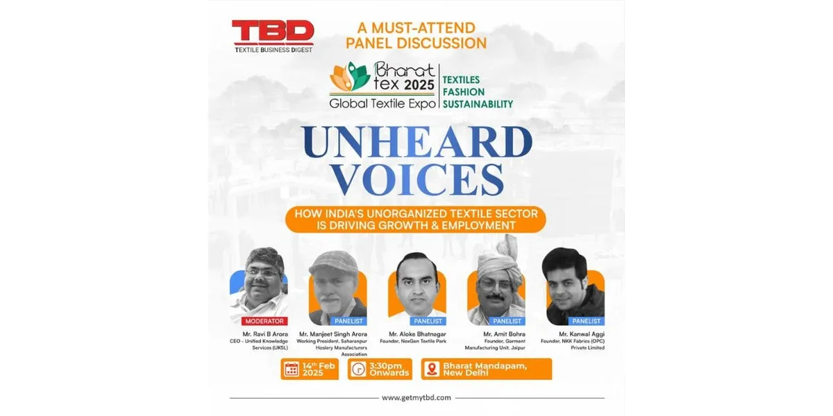 We are thrilled to invite you to Bharat Tex 2025, where Textile Business Digest will host an insightful and thought-provoking panel discussion. This highly anticipated session, "Unheard Voices: How India's Unorganised Textile Sector is Driving Growth & Employment," will delve into the immense potential of India's unorganised textile industry, which is often overlooked sector.