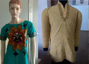 - Hand painting : For the hand painting acrylic paints are used for painting two to three coats are given, after the completion of painting the garment is allowed to dry for 24 hours and it is pressed in the reverse side, If the pressing is not carried out the paint will drain off within a wash.