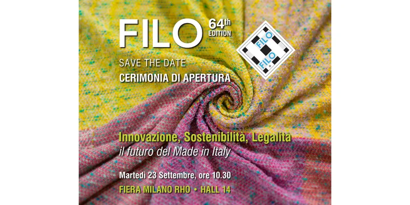 The opening ceremony of the 64th edition of Filo will take place on Tuesday, September 23, 2025, at 10:30 a.m. at Fiera Milano Rho, Hall 14. The event is titled “Innovation, Sustainability, Legality: The Future of Made in Italy.”