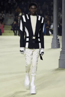 Balmain's Fall/Winter 2022 collection included leather harnesses and gold-buttoned jackets with strong shoulders that mirrored the shape of a contemporary warrior. In his 2023 collection, Rick Owens, who is renowned for his dystopian vision, transformed the runway into a theatrical battlefield by showcasing apocalyptic coats with hoods inspired by gas masks and combat-ready boots.