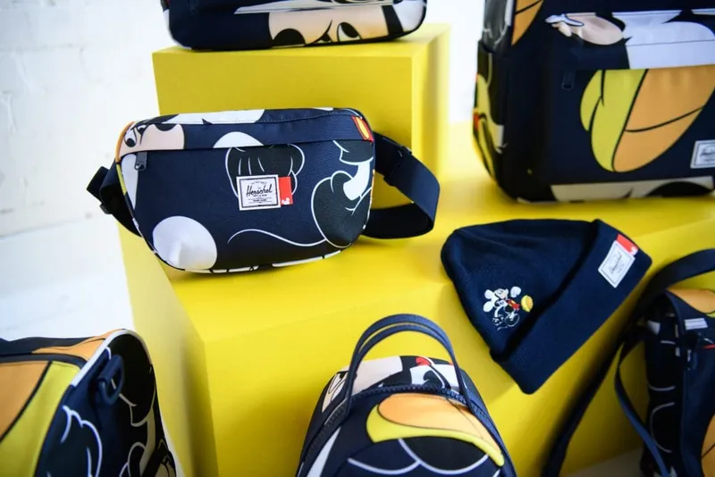 Whimsical Herschel accessories is paying homage to Disney’s Mickey Mouse with their newest collaboration. Their collaboration of travel bags and accessories collection includes backpacks, messenger bags, beanies, duffles and more. Showcasing the artistry of Mickey Mouse through the years. Signature Herschel styles commemorate the evolution of the famous cartoon character with a split motif combining current Mickey illustration with the beloved mouse 's black-and-white archival image. On backpacks, crossbody bags, fanny packs, duffel bag and a buckled camper backpack, the print appears. Each bag is lined with bright yellow cloth and features a Mickey-printed interior. Black and navy blue beanies and dad's caps also have an embroidery of Mickey. The Disney x Herschel collection ranges from $25 to $120 USD at the Herschel website. References: https://hypebae.com/2020/8/disney-herschel-supply-collaboration-bag-collection-mickey-mouse-backpack-crossbody-duffel-release