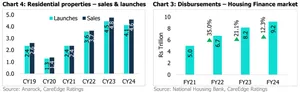 Post-pandemic surge in residential property sales with normalising disbursements As one of the key drivers of the housing finance industry, the residential properties market remained buoyant, with sales showing an absolute growth of 74% since CY19 to 4.6 Lakh units in CY24.