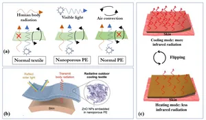 The selection of photocatalytic materials is critical to the effectiveness of the hybrid system. TiO₂ is widely studied due to its chemical stability and strong oxidative activity under ultraviolet light. However, its limited visible-light response restricts indoor applications. Graphitic carbon nitride has attracted attention as a visible-light-responsive photocatalyst with lower toxicity and improved compatibility with polymer substrates. For hydrophobic surface engineering, low-surface-energy polymers combined with nanoscale roughness are used to achieve superhydrophobicity. The challenge lies in balancing surface roughness with fabric flexibility and air permeability. Excessive coating thickness or pore blockage can significantly reduce breathability, which is unacceptable for wearable textiles. (Fig. 2)