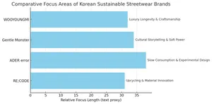 The study engages with multiple research areas, including the role of street fashion in shaping cultural identity, global and Korean sustainability frameworks such as slow fashion, circular design, and eco-conscious material innovation, and the broader influence of digital platforms in disseminating fashion trends. Case studies of Korean brands such as RE;CODE (upcycling and waste reduction), ADER error (experimental streetwear and slower consumption cycles), Gentle Monster (cultural storytelling and soft power), and WOOYOUNGMI (timeless tailoring and sustainable design) provide practical examples of how sustainability intersects with urban fashion aesthetics.