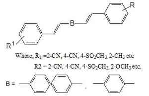 (1) Distyryl – Arenes: The non ionic class of distyryl-arenes are excellent whiteners for whitening polyamides, cellulose acetates and plastics with a general formula