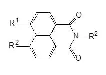 Naphthalimides: The naphthalamide ring system has high stability with good light fastness and chlorite stability, the only disadvantage being low molar extinction coefficient.