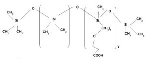 Application area 5: Wash durable hydrophobic bulky finish This carboxy modified Polydimethyl silicone. It is used in the emulsion form. Since it contains carboxy functional group it reacts with hydroxyl group of cellulose in presence of catalyst at high temperature during curing and forms covalent bond as a result durable finish obtained. It is non yellowing and softness is less than amino Silicone. It has very less application in textile.