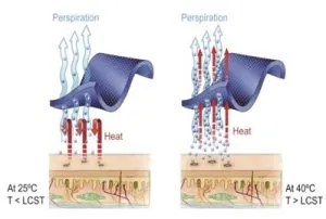 - Low water absorption of the layer of clothing just positioned to the skin