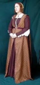 The world has double in size and so the fashion: Huge sleeves, big skirts, a lot of satin Lets break the layers: Chemise- then there is a Bust( it flattens and stiffes the torso to hold the heavy fabric) – over that sleeveless gown with detachable sleeves,( Baragoni sleeves are the ones with rushes on the top), colletto, butt emphasis. Hair and headdresses