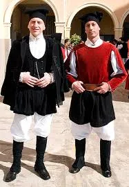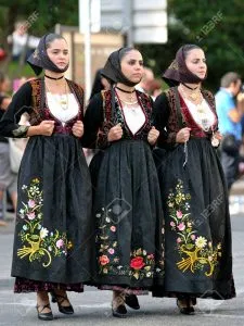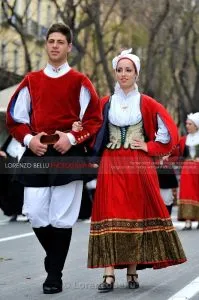 Between the 19th and 20th centuries in the island of Sardinia there were as many as 400 different traditional costumes. Nearly every village had its own typical outfit, which was worn with pride as this was part of people’s local heritage and also reflected people’s place in society. Although individual costumes varied greatly, they had certain features in common: women wore a veil, a shawl, long pleated skirts and embroidered blouses, whilst men wore a knit wool cap with a long tail, a close-fitted jacket and loose white trousers. Traditional Sardinian garb is extremely colourful and features elaborate embroidery. Embroidery is still a thriving craft that is evident in the beautiful traditional shawls boasting different flower patterns. These days, Sardinian traditional clothes are worn during folk festivals and major religious holidays but you can admire them all year round in the many ethnographic museums. Started in the 16th Century Mainly black and white or red and white. The head is covered by a white clothe Sardegna Men Costume