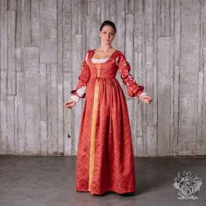 camicia (white long sleeves linen dress), Gamurra( high waist long dress with detachable sleeves), over it Giornea( slit sides and belted). Slowly the skirt will get fuller Slash and Puff Fashion :