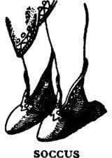 a laced, soft half-shoe (soccus): From sandals and slippers to hobnailed military boots, Rome had it all. Roman shoes were typically made of leather but were also made of wood materials. There were several types of shoes that everyday Romans could wear. There was the cabatina which according to Oracle Think Quest, was a sandal made from one piece of leather with a soft sole and secured with a lace. It was one of the simper shoes worn by off-duty soldiers. There was also the soccus. This was one of the most basic forms of Roman shoe. This shoe was constructed using one piece of leather that gets sewn up along the heel and runs to the toe. It had a sole with no hobnails. It was basically a slipper mainly worn by Roman women and children only inside the home. A calceus was a soft, leather, hobnailed shoe fastened using laces.It was considered the perfect cross between a sandal and a shoe. Worn with the toga, this shoe was the typical outdoor shoe of a Roman. And finally, a solea was a simple sandal with a thin leather band between the toes and a hobnailed sole. This type of shoe was also referred to as a sandalia, or crepidae. But there were also the military shoes. A soldier would wear a shoe known as the caliga. This shoe was a particularly heavy sandal with a hobnailed sole and separate leather upper fastened by thin bands. For most of the year, men and women alike wore sandals. The only difference between the two was that the women's sandals were made of a softer leather. In the winter shoes were often cork-soled because it was not as cold as other accessible materials. When a Roman set out to dine with a friend, he wore his calcei and had his slave carry his soleae under his arm. At the entrance to the host's house, the Roman took off his dirty shoes and put on his sandals until it was time to leave. Rome woman Jewellery and hair Style Jewelry