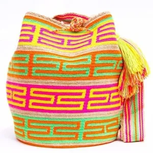 The Wayuu fabric is hand-stitched colorful kanás (weaving designs), represent the elements of the society and daily life of the indigenous people, as well as elements of their natural environment. The elements include universe, flowers, animals. More the complex and elaborate motifs, the more valuable the handcrafted piece is. The Wayuu women weave chinchorros which are the traditional Wayuu hammocks, backpacks, mats, and sandals. Chinchorro hammock is soft, elastic, with sparse weave but have a strong yarn quality, whereas the modern hammocks are heavy and compact. However, the most common woven creations are the mochilas, or susu, small bags, made of colourful yarn with intricate patterns and motifs. They are the most sold product on the national and international market.